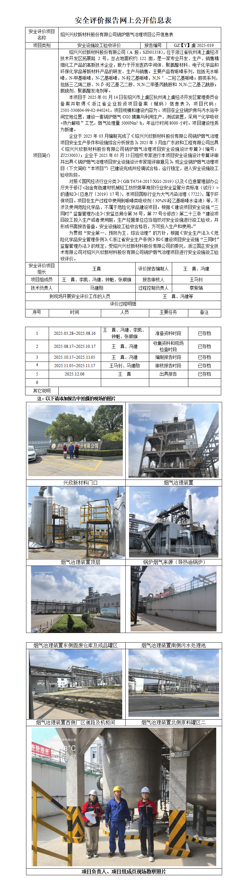 GZ【Y】虞2025-019 绍兴兴欣新材料股份有限公司锅炉烟气治理项目安全设施竣工评价报告公开信息表