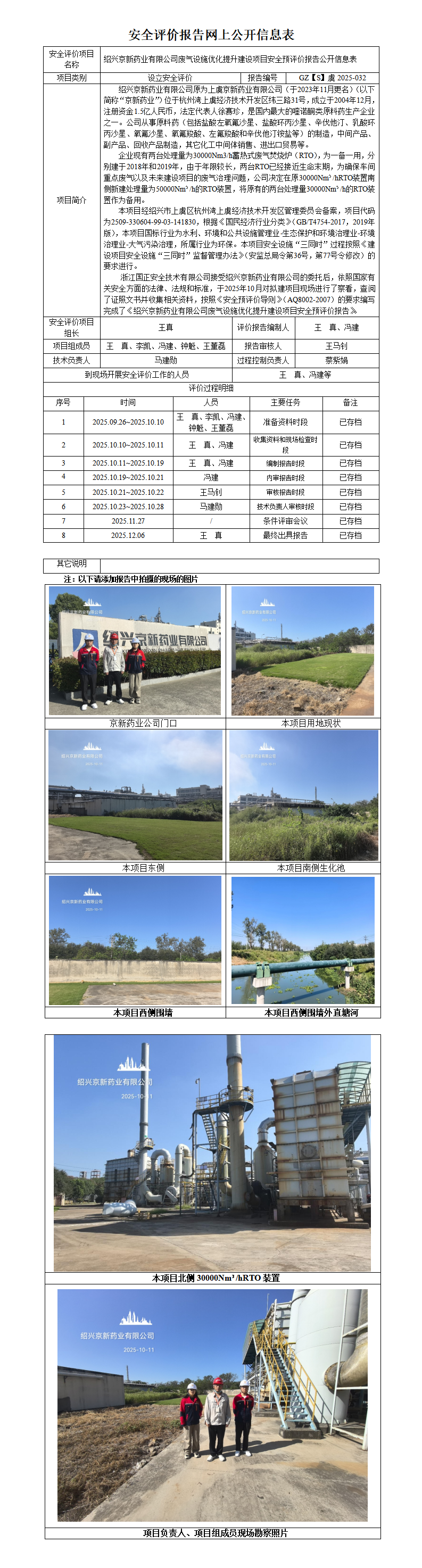 GZ【S】虞2025-032绍兴京新药业有限公司废气设施优化提升建设项目安全预评价公开信息表_01