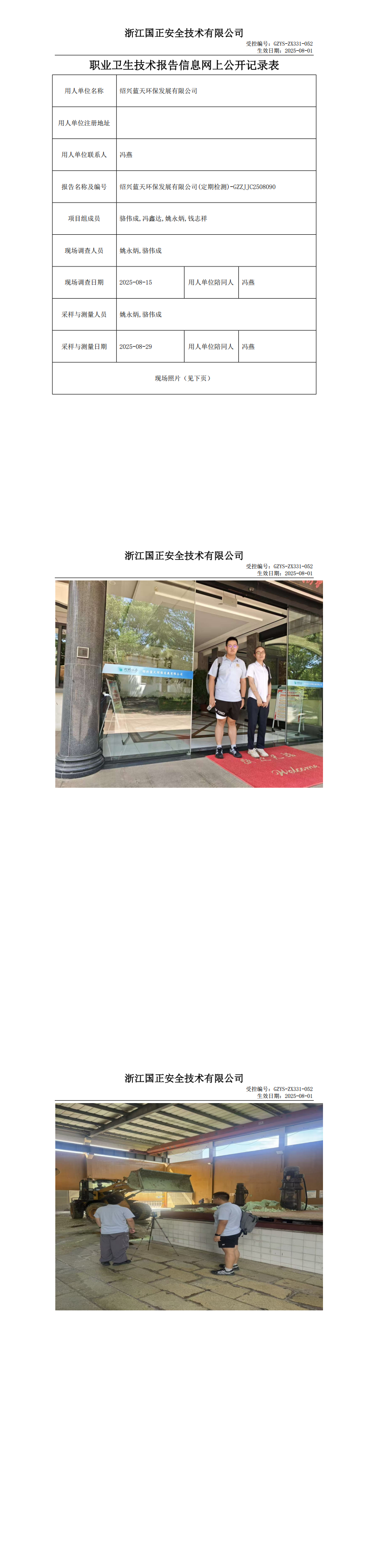 GZZJJC2508090_绍兴蓝天环保发展有限公司工作场所职业病危害因素检测报告网上公开信息表
