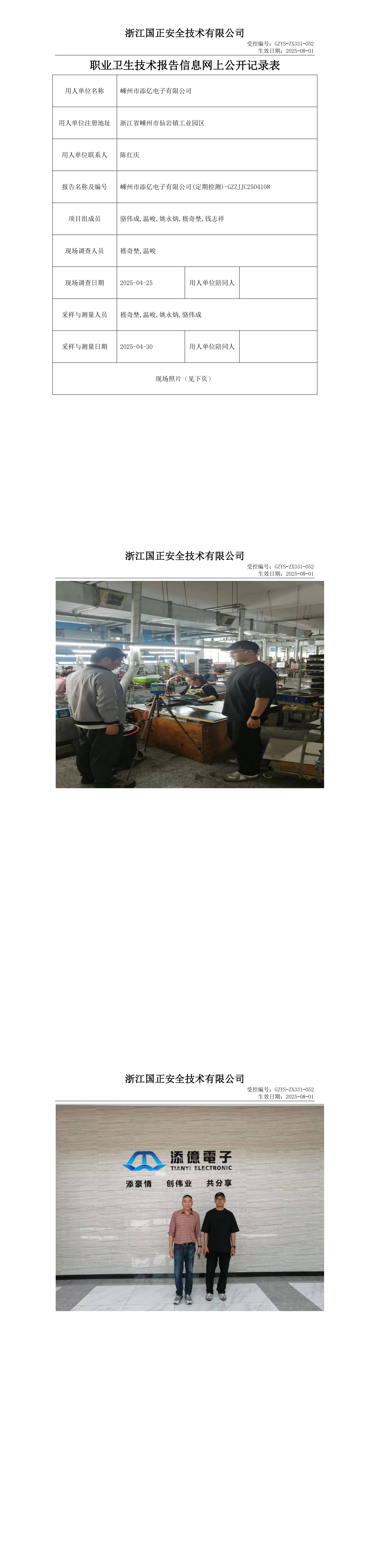 GZZJJC2504108嵊州市添亿电子有限公司工作场所职业病危害因素检测报告网上公开信息表
