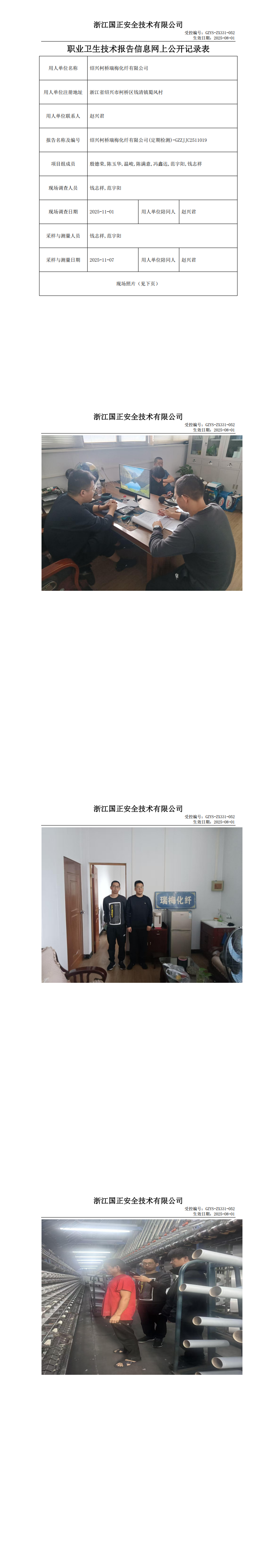 GZZJJC2511019绍兴柯桥瑞梅化纤有限公司工作场所职业病危害因素检测报告网上公开信息表