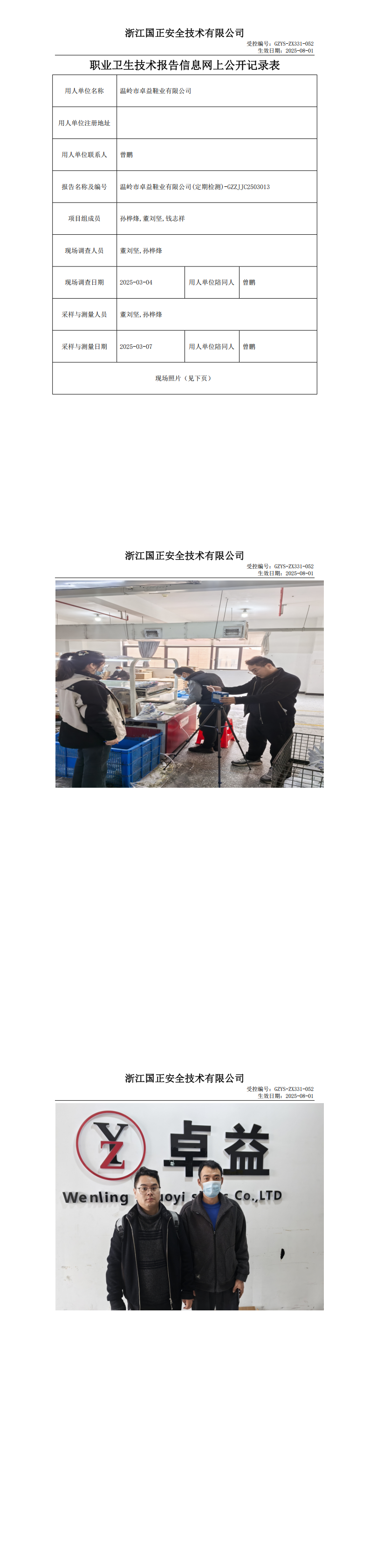GZZJJC2503013_温岭市卓益鞋业有限公司工作场所职业病危害因素检测报告网上公开信息表