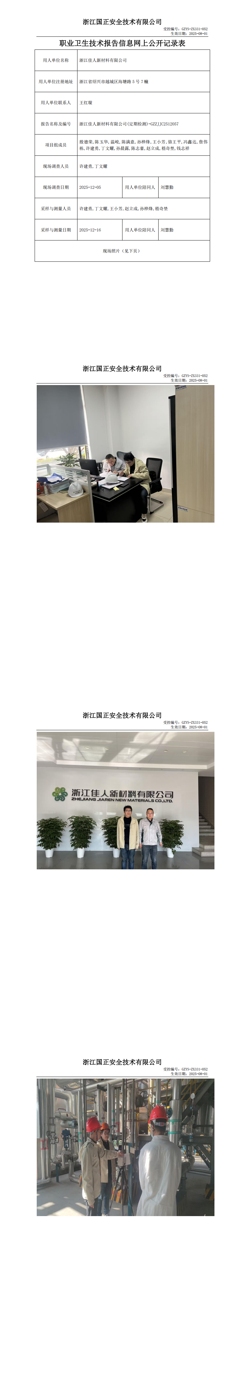 GZZJJC2512057浙江佳人新材料有限公司工作场所职业病危害因素检测报告网上公开信息表