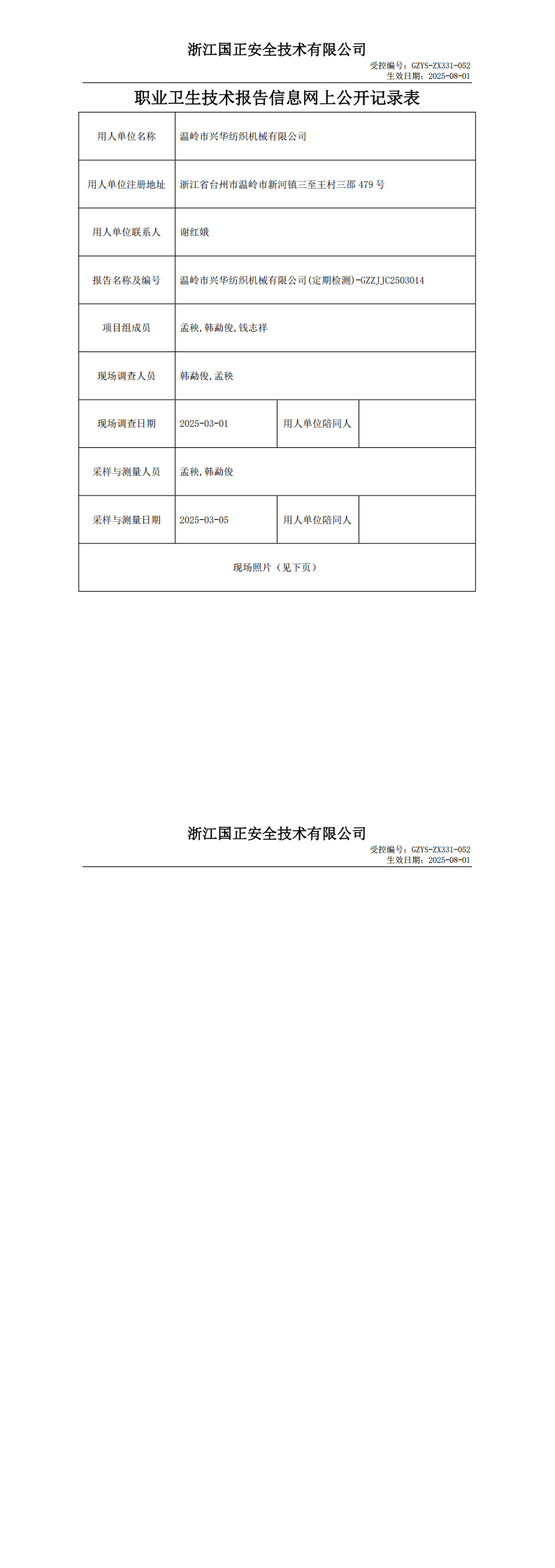 GZZJJC2503014_温岭市兴华纺织机械有限公司职业卫生检测与评价报告网上公开表_