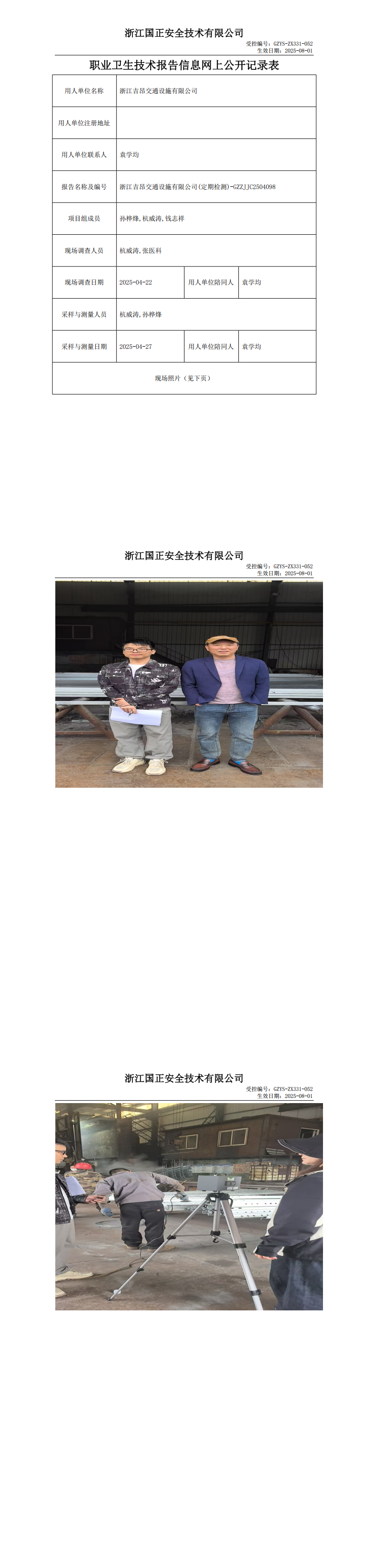 GZZJJC2504098_浙江吉昂交通设施有限公司工作场所职业病危害因素检测报告网上公开信息表品有限公司