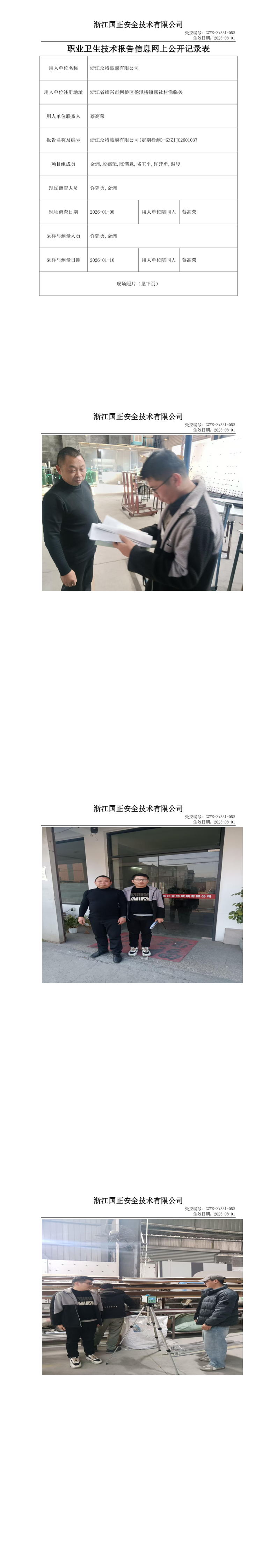 GZZJJC2601037浙江众特玻璃有限公司工作场所职业病危害因素检测报告网上公开信息表
