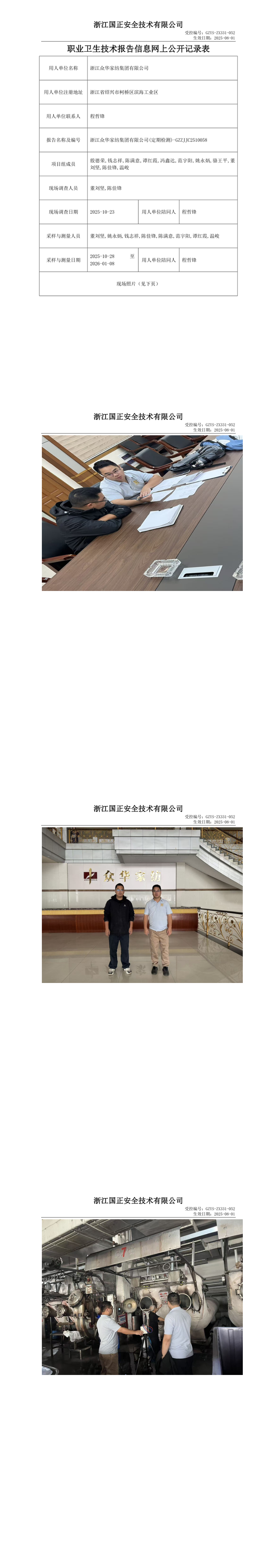 GZZJJC2510058-浙江众华家纺集团有限公司工作场所职业病危害因素检测报告网上公开信息表