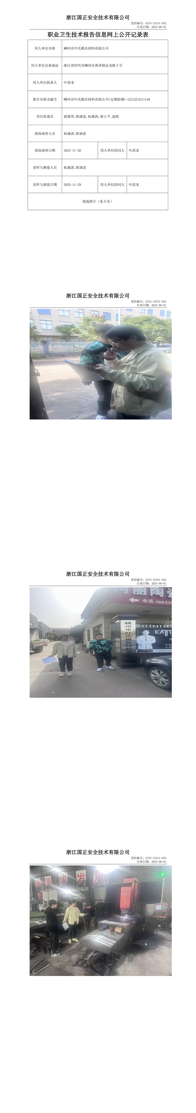 GZZJJC2511146_嵊州市叶氏模具材料有限公司工作场所职业病危害因素检测报告网上公开信息表