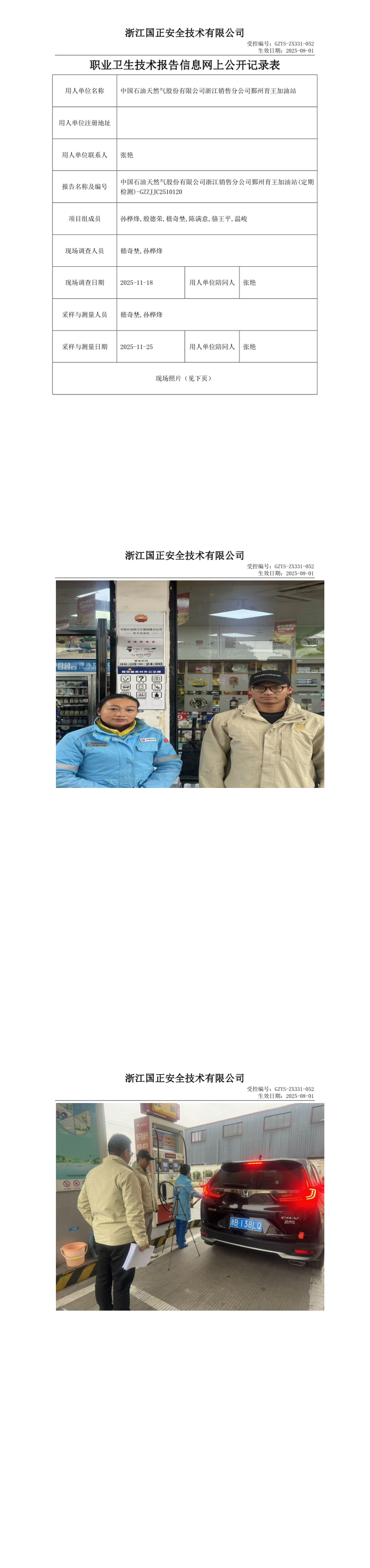 GZZJJC2510120_中国石油天然气股份有限公司浙江销售分公司鄞州育王加油站工作场所职业病危害因素检测报告网上公开信息表