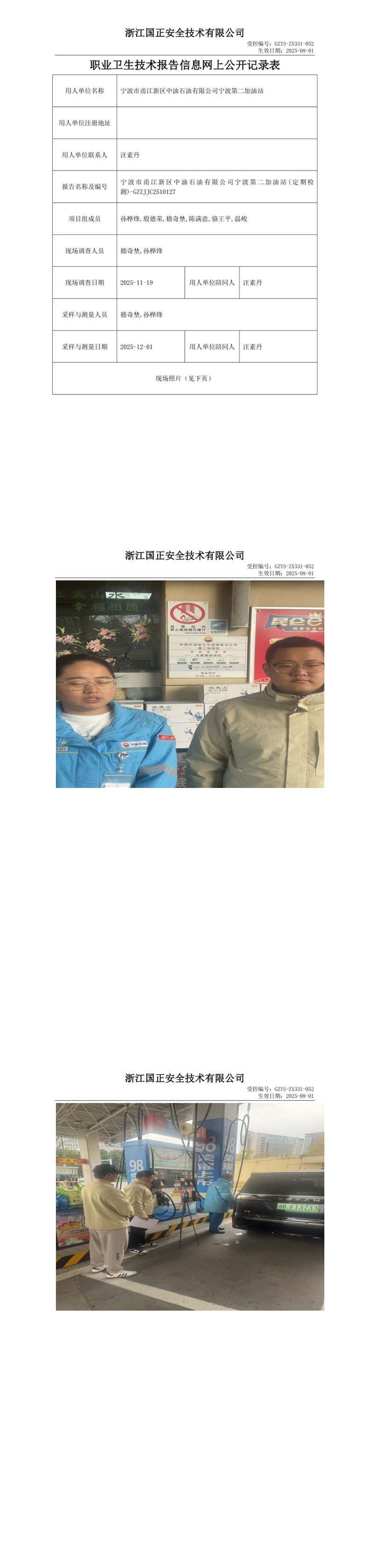 GZZJJC2510127_宁波市甬江新区中油石油有限公司宁波第二加油站工作场所职业病危害因素检测报告网上公开信息表