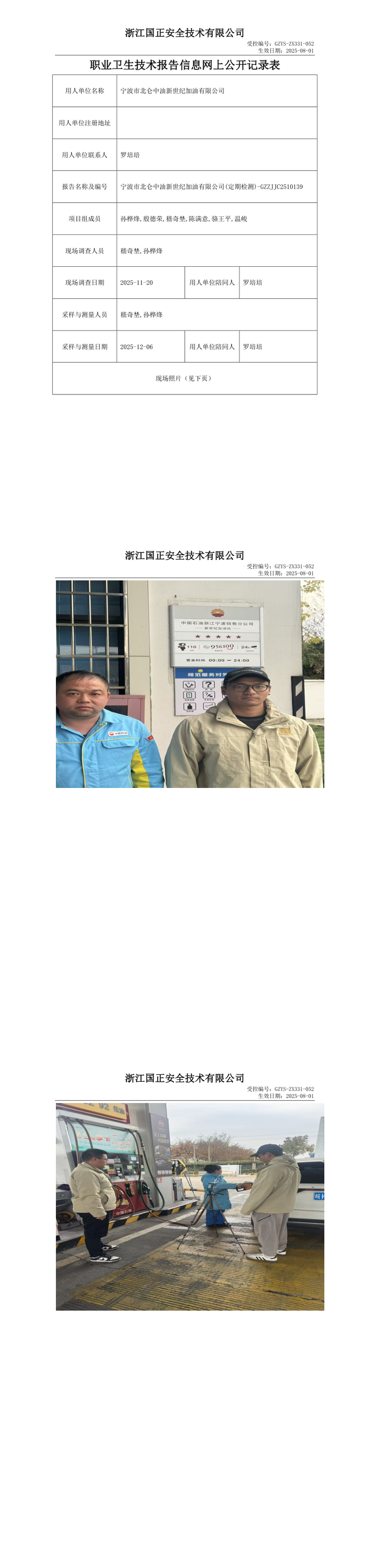 GZZJJC2510139_宁波市北仑中油新世纪加油有限公司工作场所职业病危害因素检测报告网上公开信息表