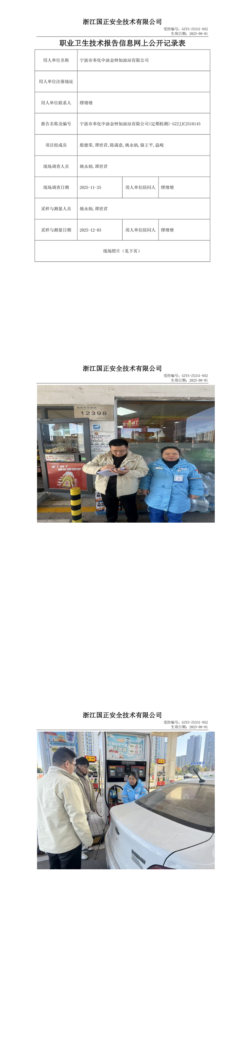 GZZJJC2510145_宁波市奉化中油金钟加油站有限公司工作场所职业病危害因素检测报告网上公开信息表
