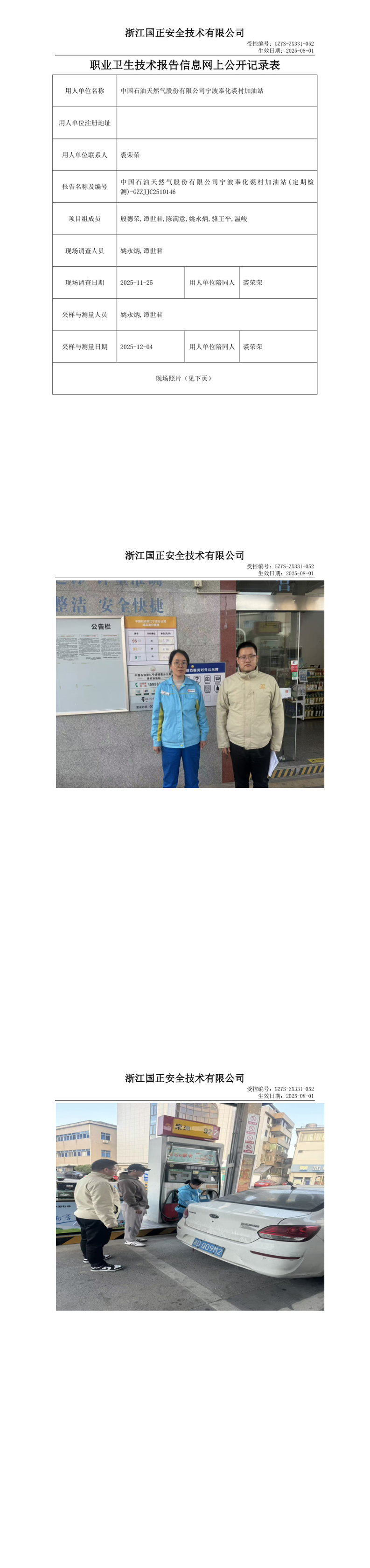 GZZJJC2510146_中国石油天然气股份有限公司宁波奉化裘村加油站工作场所职业病危害因素检测报告网上公开信息表