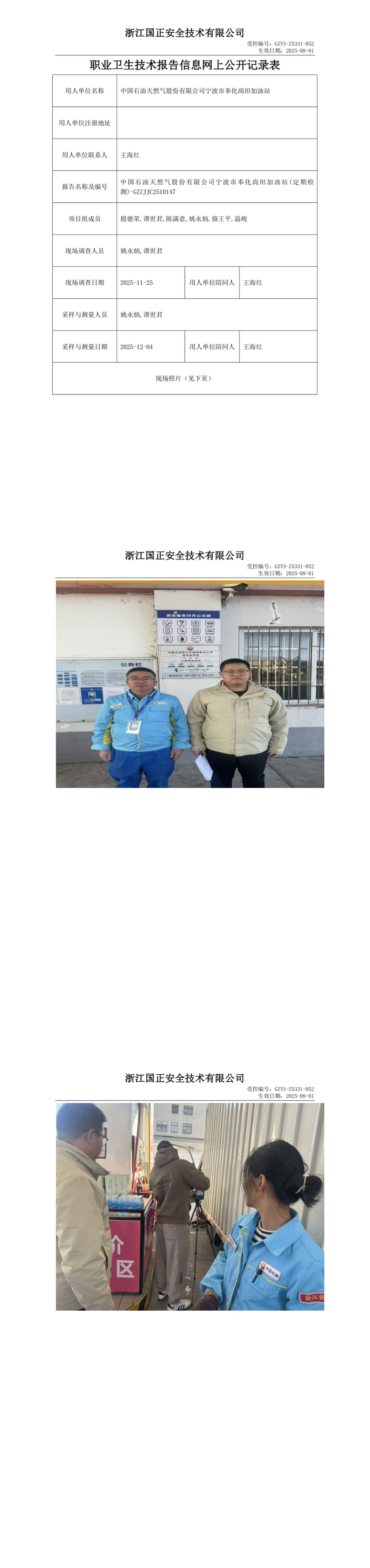 GZZJJC2510147_中国石油天然气股份有限公司宁波市奉化尚田加油站工作场所职业病危害因素检测报告网上公开信息表